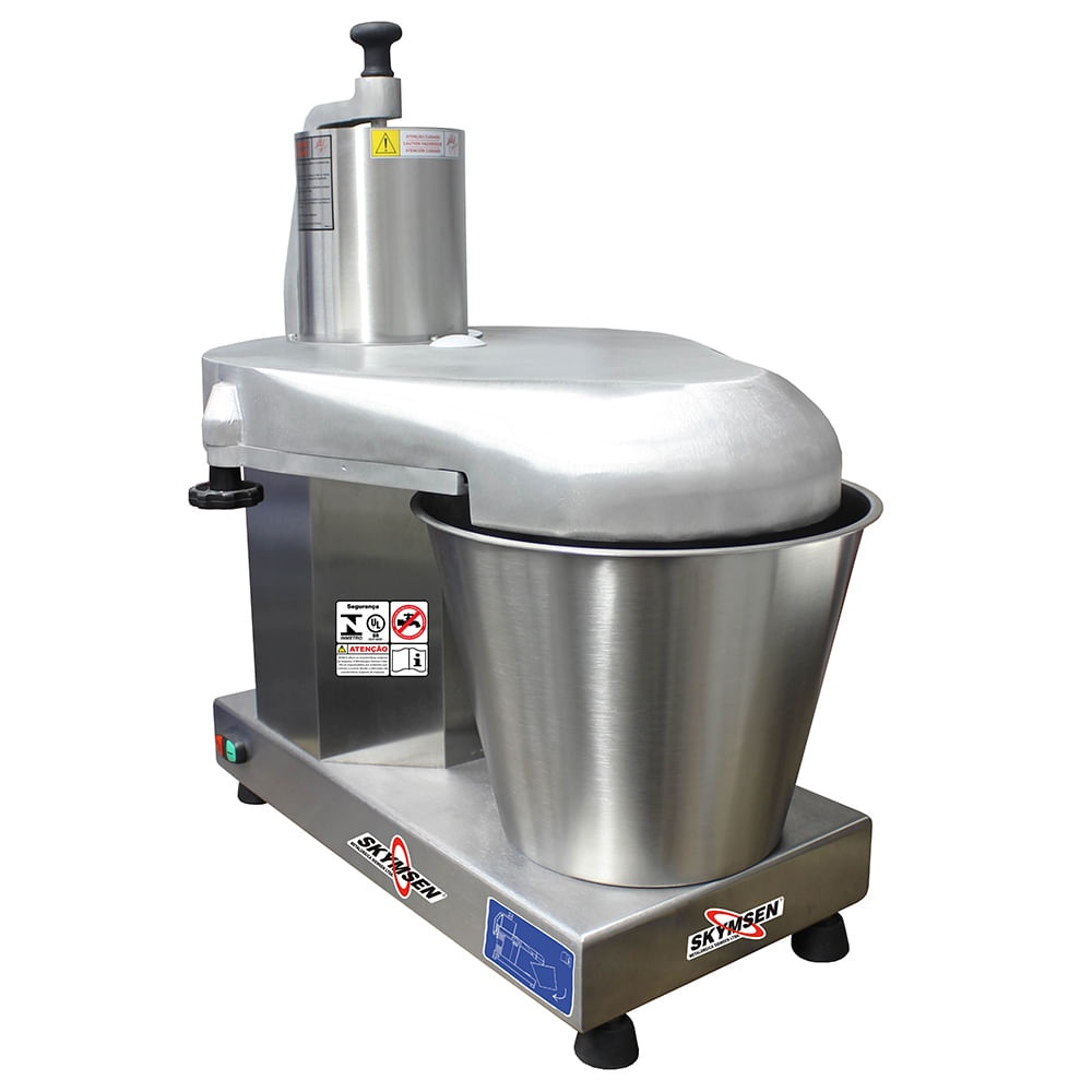 Com 6 discos com diâmetro de 429mm, este equipamento pode processar uma grande variedade de vegetais, conservando suas propriedades nutritivas, cores e sucos, evitando o desperdício e garantindo a uniformidade do corte. Indicado para realizar diversos tipos de cortes, entre fatiar, ralar e desfiar. O resultado dos cortes depende do estado, do tipo e da qualidade do produto a ser processado. Este produto foi desenvolvido para o uso em cozinhas comerciais. É utilizado, por exemplo, em restaurantes, cantinas, hospitais, padarias, açougues e similares. Com o Bocal Redondo com diâmetro de 16cm, é adequado para o corte de diversos tipos de produtos. Gabinete construído em Aço Inox, e todos os demais componentes que incorporam o equipamento são construídos com materiais criteriosamente selecionados para cada função, dentro dos padrões de testes e experiência da Skymsen. Este equipamento possui 2 dispositivos de segurança: O primeiro serve para evitar que o equipamento ligue com a Tampa da Câmara aberta. E o segundo dispositivo é acionado quando o soquete Empurrador Redondo é levantado e retirado do seu Bocal, desta forma o equipamento desliga, religando automaticamente quando o soquete retornar ao seu local. Produto em conformidade com NR-12 e INMETRO. Discos Fornecidos com o equipamento: Disco Fatiador 1,5mm Disco Fatiador 3mm Disco Desfiador 3mm Disco Desfiador 5mm Disco Desfiador 8mm Disco Ralador Dados Técnicos: Potência (CV): 1 Produção (Kg/h): 400 Rotação do Disco (Rpm): 510 Tensão (Voltagem): Mono 110 ou 220V Medidas em Centímetros: Altura: 77 Largura: 71 Profundidade: 52 Diâmetro do Bocal Redondo: 16 Peso Líquido (Kg): 71 Peso Bruto (Kg): 99 |