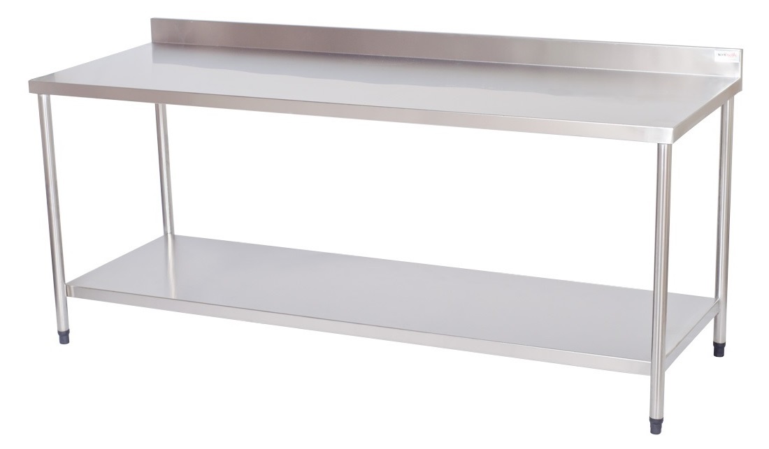 Mesa Lisa com Prateleira Lisa Atual Inox MLPL-430 em Aço Inox 430