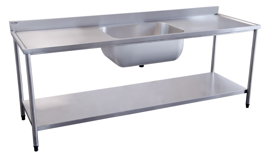 Mesa com Cuba e Prateleira Lisa Atual Inox MCPL-304 em Aço Inox 304