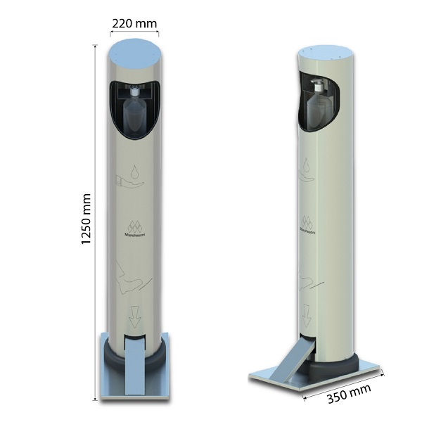 O Totem para desinfecção foi criado para oferecer muito mais Segurança na hora da Higienização das mãos. Seu acionamento é feito através de um Pedal Mecânico, oferecendo muito mais segurança aos seus clientes, pois assim eles não têm a necessidade de tocar no equipamento evitando a contaminação cruzada. Indicado para o uso nas entradas de todos os estabelecimentos que tenham um grande fluxo de atendimento aos clientes como Supermercados, Restaurantes, Açougues, Panificadoras, Farmácias, Hospitais, Clínicas, Academias e etc .... Pode ser utilizado com Álcool em Gel ou Líquido, Sabonete Líquido ou qualquer outro tipo de produto para a Higienização ou Desinfecção. A higienização das mãos é a medida isolada individual mais eficaz para prevenir a transmissão de vírus e bactérias em ambientes públicos. As mãos é uma das principais vias de transmissão de vírus e bactérias, pois estão em contato com tudo em nossa volta e por consequência em muitas vezes em contato direto com objetos contaminados. Por isto, sempre que possível, faça a descontaminação / higienização das mãos com Álcool Gel 70º. - Corpo, Pedal e Mecanismo de Acionamento produzidos em Aço Inox; - Base extremamente resistente confeccionada em Nylon; - Reabastecimento super simples e prático. Medidas em Milímetros: Comprimento: 350 Largura: 220 Altura: 1250 Peso (Kg): 3,7 OBS.: Reservatório para o Álcool não acompanha o equipamento.