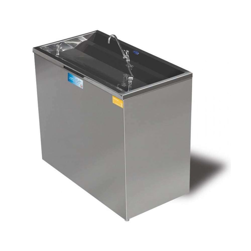 Os Bebedouros Industriais da KTN foram desenvolvidos para serem utilizados em Academias, Obras, Igrejas, Indústrias, Postos de Combustíveis, e atender locais que tenham um intenso fluxo de pessoas. Gabinete: Em aço inox 430. Isolamento: EPS. Serpentina: Externa de Cobre. Aparador/cuba: Em aço inox 430. Torneiras: 2 do tipo jato e 1 copo. Filtro: Acompanha filtro para contribuir com a melhoria da qualidade da água. Temperatura: Controle através de termostato com regulagem. Capacidade para 6 litros de água gelada. Pode atender, no fluxo, média de até 100 pessoas. Certificado pelo Inmetro. Medidas em Centímetros: Altura: 72 Largura: 37 Comprimento: 71 Peso Liquido (Kg): 25 Tensão: Disponível em 127 ou 220V. Compressor: Embraco 1/6HP. Gás utilizado: R134A (Ecológico).OBS: Acompanha Filtro
