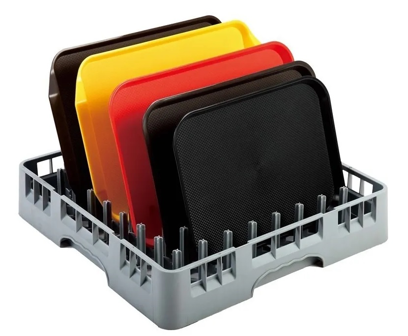 Rack (gaveta) de pinos, fechada, para variados tamanhos de pratos, bandejas menores de 46 cm de comprimento e outras louças que se adequarem à gavetas com pinos. Características especiais: - Modelo universal, compatível com todas as marcas de lavadoras de louças, de uso profissional (Hobart, Netter, Winterhalter, Classeq, MVF, Prática, Fiamma, Fagor, Stero, Champion, Meiko, etc); - Recortes de fácil acesso e empunhadura nos quatro lados, facilitando o manuseio; - Material resistente a impactos e a temperatura de até 94ºC. - Malha inferior reforçada com objetivo de prolongar a vida útil da gaveta; - Multi-janelas nos quatro lados com a finalidade de eliminar obstáculos aos jatos de lavagem e enxague e permitir total circulação de ar, abreviando o tempo de secagem das louças e utensílios. - Maior quantidade de pontos (16) para apoio de puxadores ("dog's") garantindo avanço da gaveta nas máquinas de tração; - Pinos mais altos (75 mm) e equidistantes entre si, trazendo maior segurança dos utensílios no processo de higienização e possibilitando acomodação de maior quantidade de pratos e bandejas; - Cantos arredondados e superfície interna isenta de porosidades para impedir fixação de impurezas e microrganismos; -Encaixes perfeitos possibilitando empilhamento seguro. Descrição do Produto: Cor: Cinza Modelo: BP-5046 Utilização: 18 Pratos e 9 Bandejas até 46cm de comprimento. Material: PP Quantidades de Pinos (Un.): 64 Altura dos Pinos (Mm): 75 Medidas em Centímetros: Altura: 10 Largura: 50 Comprimento: 50 Peso (Kg): 4 OBS: NSF (Certificado Internacional de qualidade)