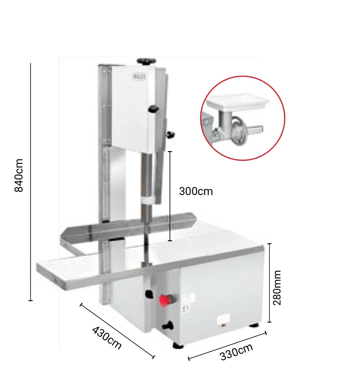 Equipamento para você que procura praticidade na hora de cortar, ideal para cortes congelados e ossos. A serra fita conta com um moedor de carne e mesa móvel, indicada para açougues. Produto certificado pelo INMETRO. Característica: Carenagem: Aço pintura epóxi branca Lamina serra (Cm): 181 Dados Técnicos: Tensão (Voltagem): Bivolt 110 e 220V. Motor (CV): 1/2 Medidas em Centímetros: Mesa Móvel (Largura x Comprimento): 49x56 cm Bocal: Nº 8 Altura: 84 Largura:33 Comprimento: 43 Peso (Kg): 38 Garantia: 6 meses contra defeitos de fabricação.