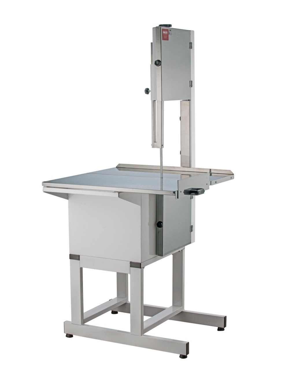 Equipamento ideal para diversos tipos de cortes em carnes, proporciona estabilidade no seu manuseio, sendo rápido e prático, com cortes preciso. Indicado para carnes com ossos, peças congeladas e peixes. Sistema de regulagem da proteção da Lâmina NR12. Característica: Carenagem em Aço Inox; Sistema de corte alimentado por motor de 1Cv através de duas polias de ferro fundido; Lamina serra (Cm): 282 Dados Técnicos: Tensão (Voltagem): Bivolt 110 e 220V. Motor (CV): 1 Medidas em Centímetros: Mesa Móvel em Aço Inox (Largura x Comprimento): 80x80 cm Altura do Corte: 46 Altura: 180 Largura:80 Comprimento: 80 Peso (Kg): 96 Garantia: 6 meses contra defeitos de fabricação.