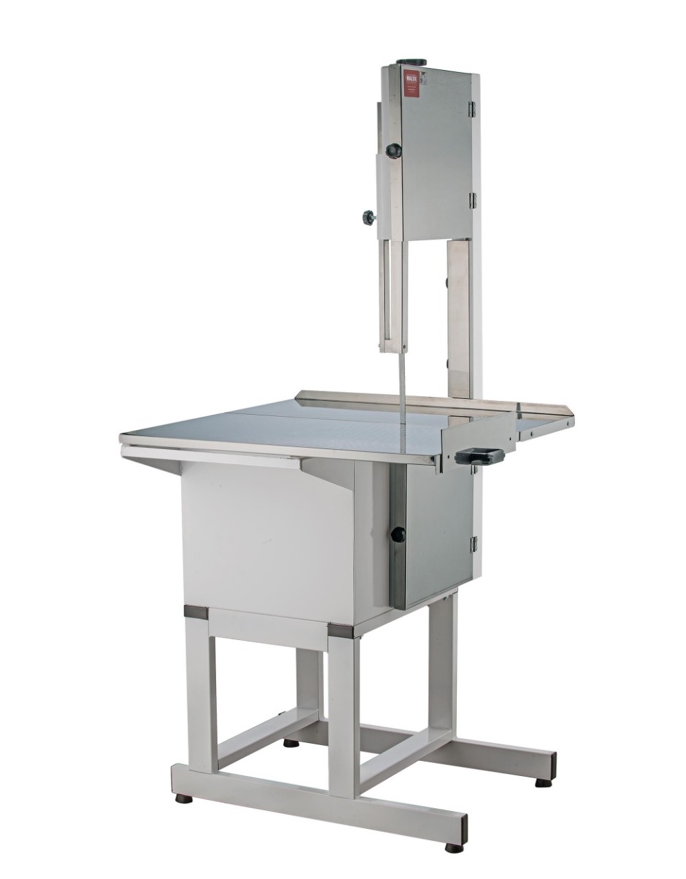 Equipamento ideal para diversos tipos de cortes em carnes, proporciona estabilidade no seu manuseio, sendo rápido e prático, com cortes preciso. Indicado para carnes com ossos, peças congeladas e peixes. Sistema de regulagem da proteção da Lâmina NR12. Característica: Carenagem em Aço Inox Sistema de corte alimentado por motor de 1Cv através de duas polias de ferro fundido; Lamina serra (Cm): 255 Dados Técnicos: Tensão (Voltagem): Bivolt 110 e 220V. Motor (CV): 1 Medidas em Centímetros: Mesa Móvel em Aço Inox (Largura x Comprimento): 80x80 cm Altura do Corte: 33 Altura: 168 Largura:80 Comprimento: 80 Peso (Kg): 90 Garantia: 6 meses contra defeitos de fabricação.