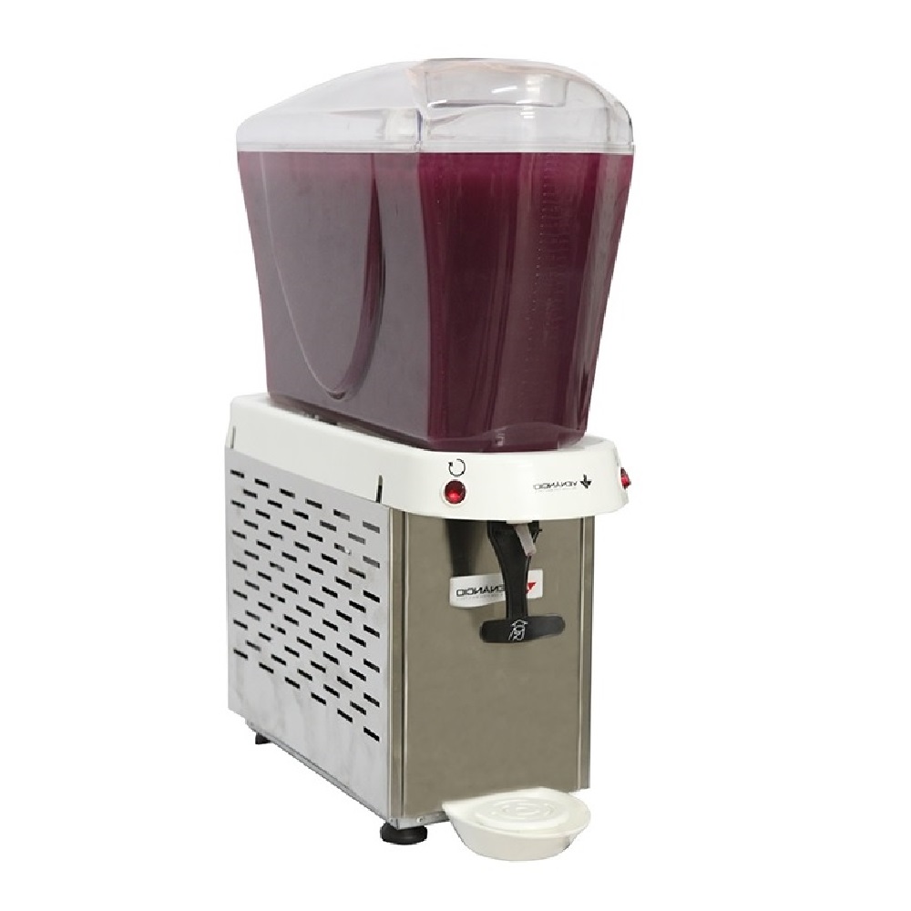 A refresqueira é ideal para restaurantes, lanchonetes e bares. Prática e super fácil de usar, ela vai ajudar a manter aquele suquinho gostoso e fresquinho sempre disponível no seu estabelecimento. Característica do Produto: Equipamentos de acordo com a portaria 371/09 do INMETRO, com selo de conformidade expedido pelo órgão; Reservatórios com altíssima resistência a quebra e de fácil higienização; Gabinete em aço inoxidável; Sistema de agitação com pá, indicado para bebidas de maior ou menor densidade; Teclas independentes para comando da refrigeração e dos agitadores; Compressor hermético de refrigeração com alto rendimento, baixo consumo e super silencioso; Gás refrigerante ecológico, age sem agredir a natureza; Capa do evaporador, que fica em contato direto com os líquidos, é confeccionada em aço inoxidável 304 estampado; Marcação de nível máximo e mínimo de líquido no próprio reservatório; Componentes plásticos atóxicos; Bico de saída de líquidos em silicone; Acionador das torneiras em ABS de fácil manuseio e higienização, que funciona através de uma mola em aço inoxidável; Botões de acionamento no painel com indicadores de ligado/desligado; Os líquidos devem ser postos já refrigerados, pois estes produtos servem para manter e não para refrigerar. Dados Técnicos: Capacidade de armazenamento de até 16 litros; Disponível nas voltagens de 127 V ou 220 V; Dados Técnicos: Capacidade Nominal (Litros): 16 Rotação da Pá (Rpm): 40 Potência do compressor (Hp): 1/10 Medidas em Centímetros: Altura: 68 Largura: 21 Profundidade: 49 Peso Líquido (Kg): 14 Peso Bruto (Kg):17 Consumo (Kw/H): 0,35 Tensão (Voltagem): Monofásico 110 ou 220V. Obs.: É obrigatório manter o sistema de refrigeração e agitação ligados ao mesmo tempo, a fim de evitar o congelamento de líquidos ao redor da capa do evaporador e consequentemente, perdendo a eficiência. |