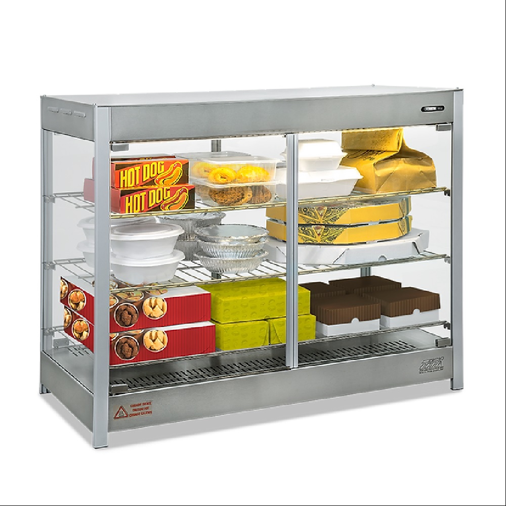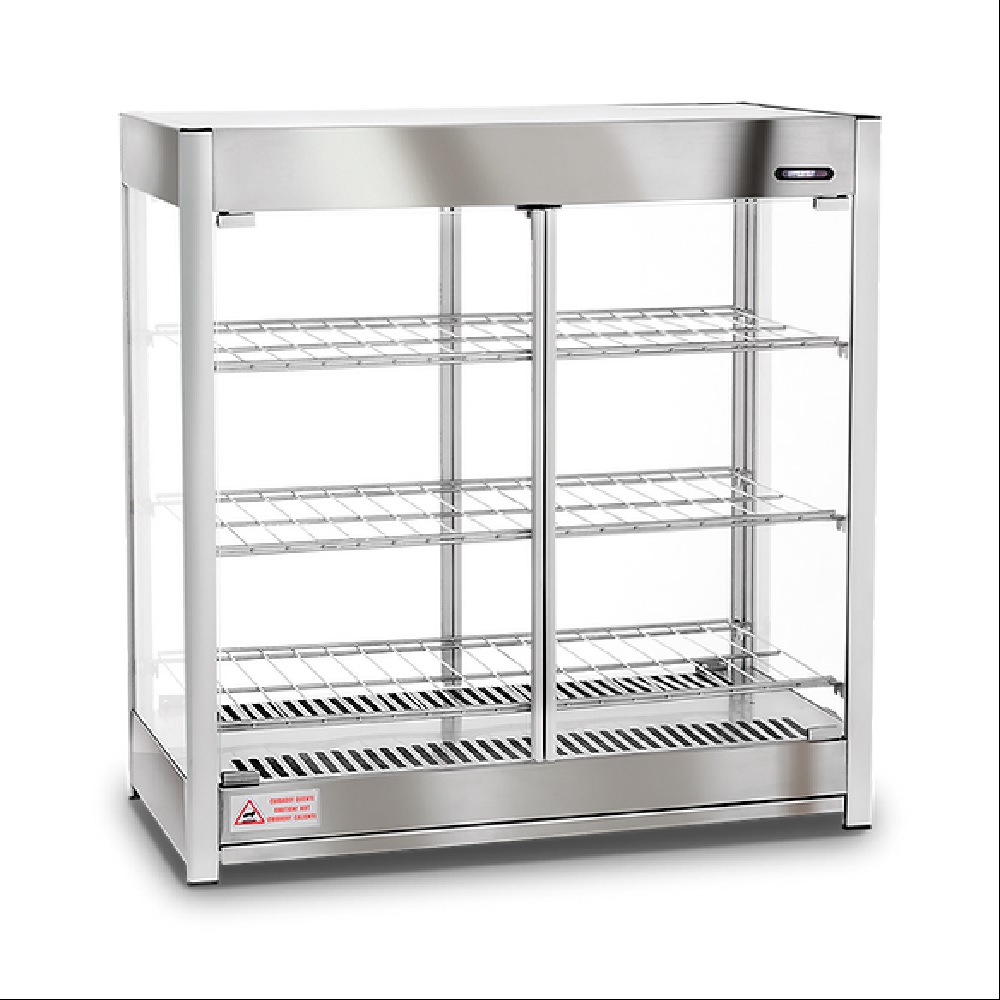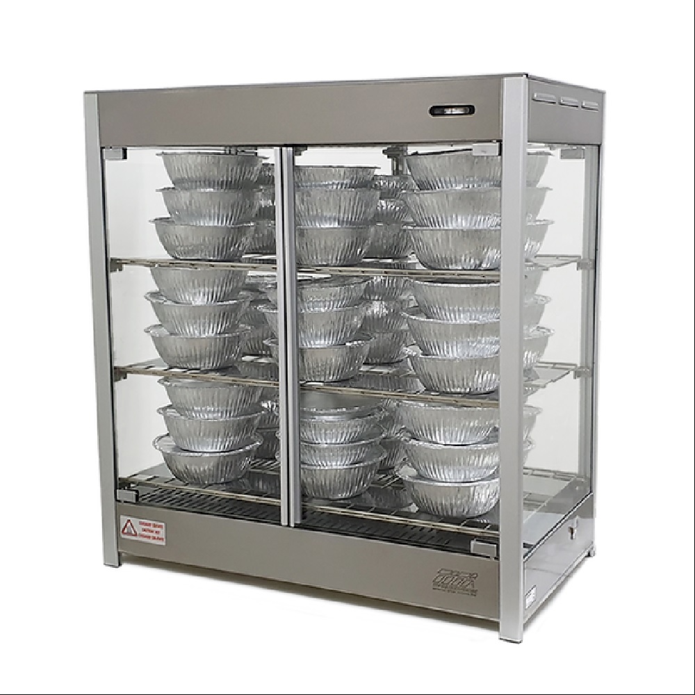 Mantém e conserva os alimentos quentes até servir ao cliente. Trabalhando de forma simples e prática, conserva e mantém pizzas e pratos aquecidos por mais tempo. Com sistema “Pass-Thru”, ideal para restaurantes e pizzarias. Características: Estrutura fabricada em perfil de alumínio anodizado e aço inox; Com todos os vidros temperados; Sistema Pass-Thru,das portas dos dois lados frontal e traseira; 3 prateleira - grelhas em aço carbono niquelado; Termostato para controle de temperatura até 90ºC; Termômetro analógico frontal com indicação da temperatura; Resistência elétrica em aço inox 304 tubular; Recipiente tipo gaveta para adicionar água e gerar umidade; Fiação elétrica com revestimento em silicone resistente a 300º C. Produto com certificação do Inmetro. Dados Técnicos: Capacidade: Até 18 caixas de pizzas de 39cm ou até 54 marmitas nº 9 Potência (Watts): 1500 Frequência (Hertz): 50 - 60 Tensão (Voltagem): Mono 127 ou 220V Consumo (Kw/h): 1,5 Medidas em Centímetros: Comprimento: 80 Largura: 44 Altura: 84 Peso Bruto: (Kg): 32